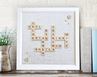 Turn Your Names Into A Crossword Puzzle Then Turn It Into Wall Art Melbourne Artframing Scrabble Tile Wall Art Tile Wall Art Diy Home Decor On A Budget